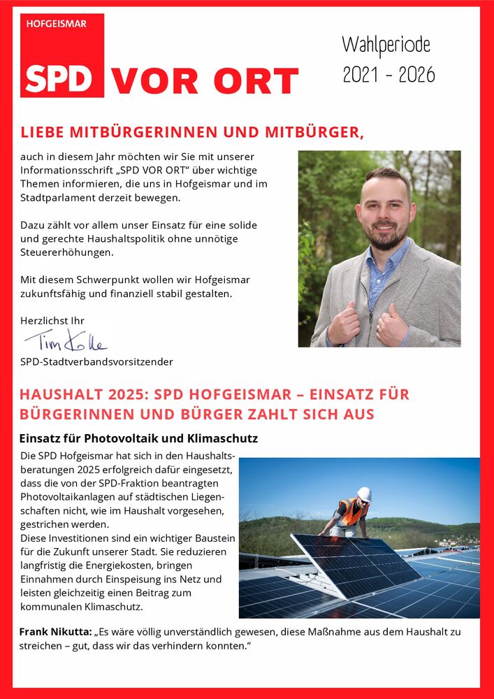 Auf den folgenden Seiten möchten wir Ihnen einen Einblick in die Arbeit des SPD-Stadtverbandes in Hofgeismar und seinen Ortsvereinen in den acht lebenswerten Ortsteilen geben. Neben unseren Neuigkeiten können Sie sich auf den folgenden Seiten über unsere Fraktion im Stadtparlament und Ihre Arbeit, die Ansprechpartner unserer Ortsvereine, sowie unseren Zielen informieren.