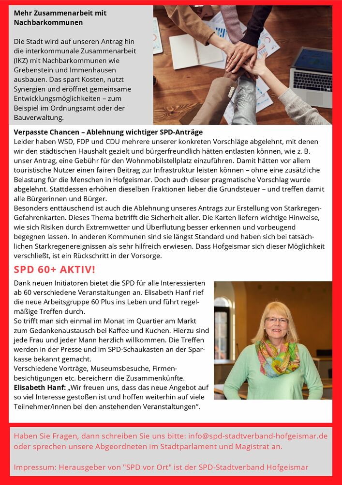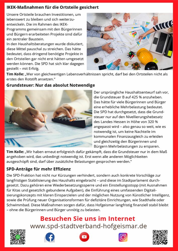 lenplanung zu vermeiden. Die SPD-Fraktion setzt sich dafür ein, dass die Stadt Hofgeismar eine